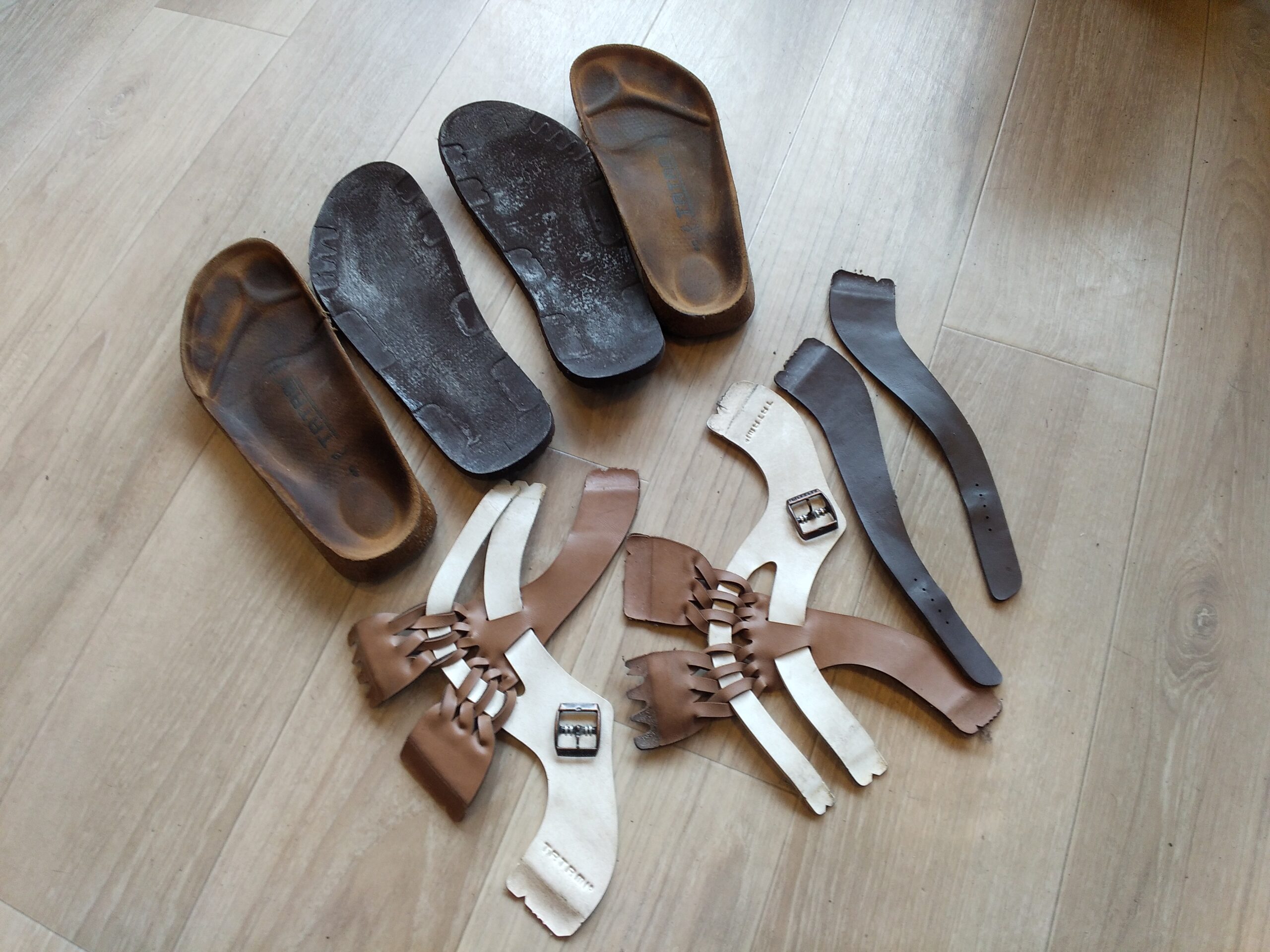 ビルケンのサンダルの接着依頼がありましたが、持ち込まれた状態で完璧なバラバラ…