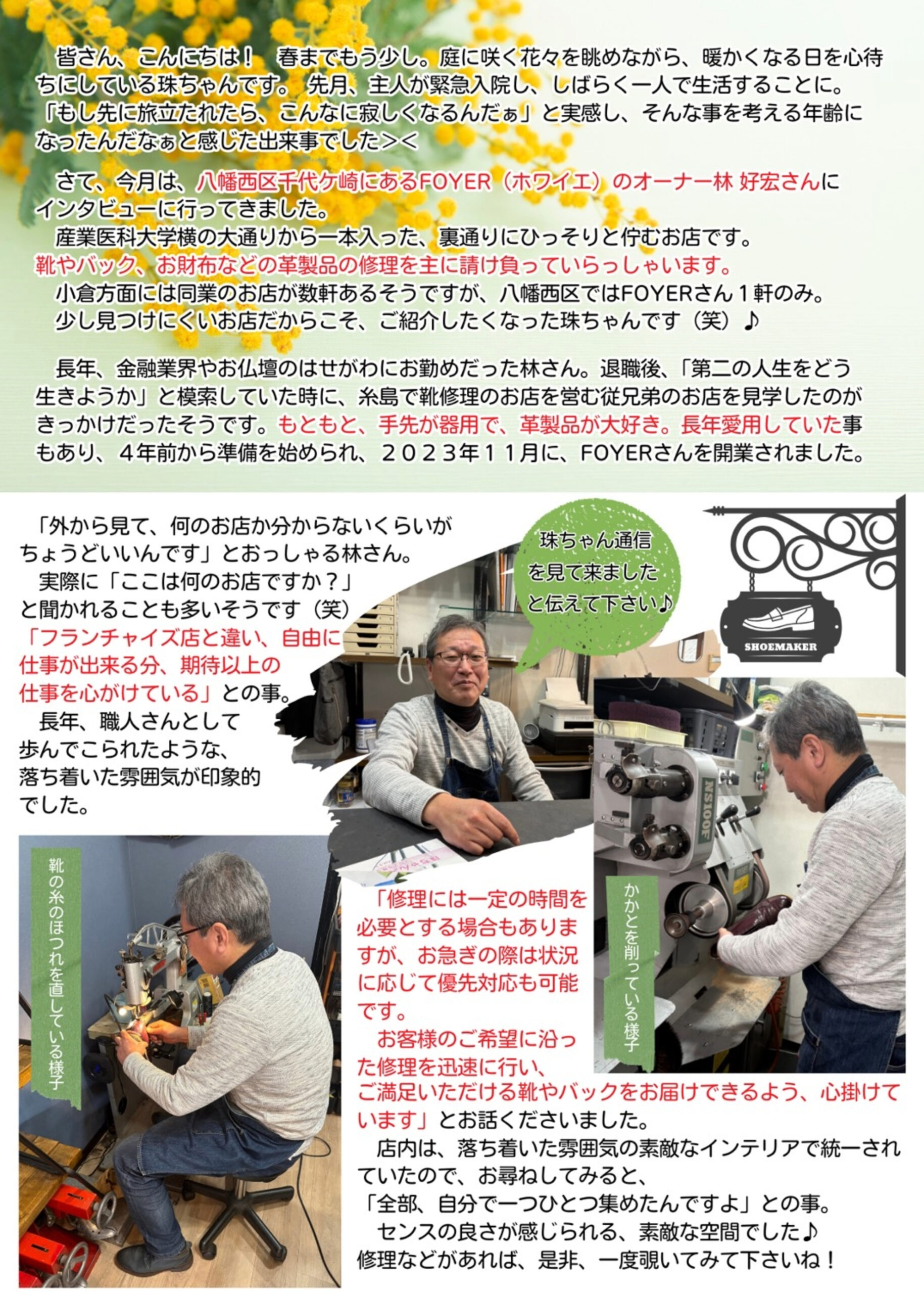珠ちゃんスマイル通信 2026年3月9日 最終更新日時 : 2026年3月9日 yhayashi チョットしたご縁で、個人的に珠ちゃんが発刊している通信誌に当店を紹介して頂きました。 本当にありがたい話です。
