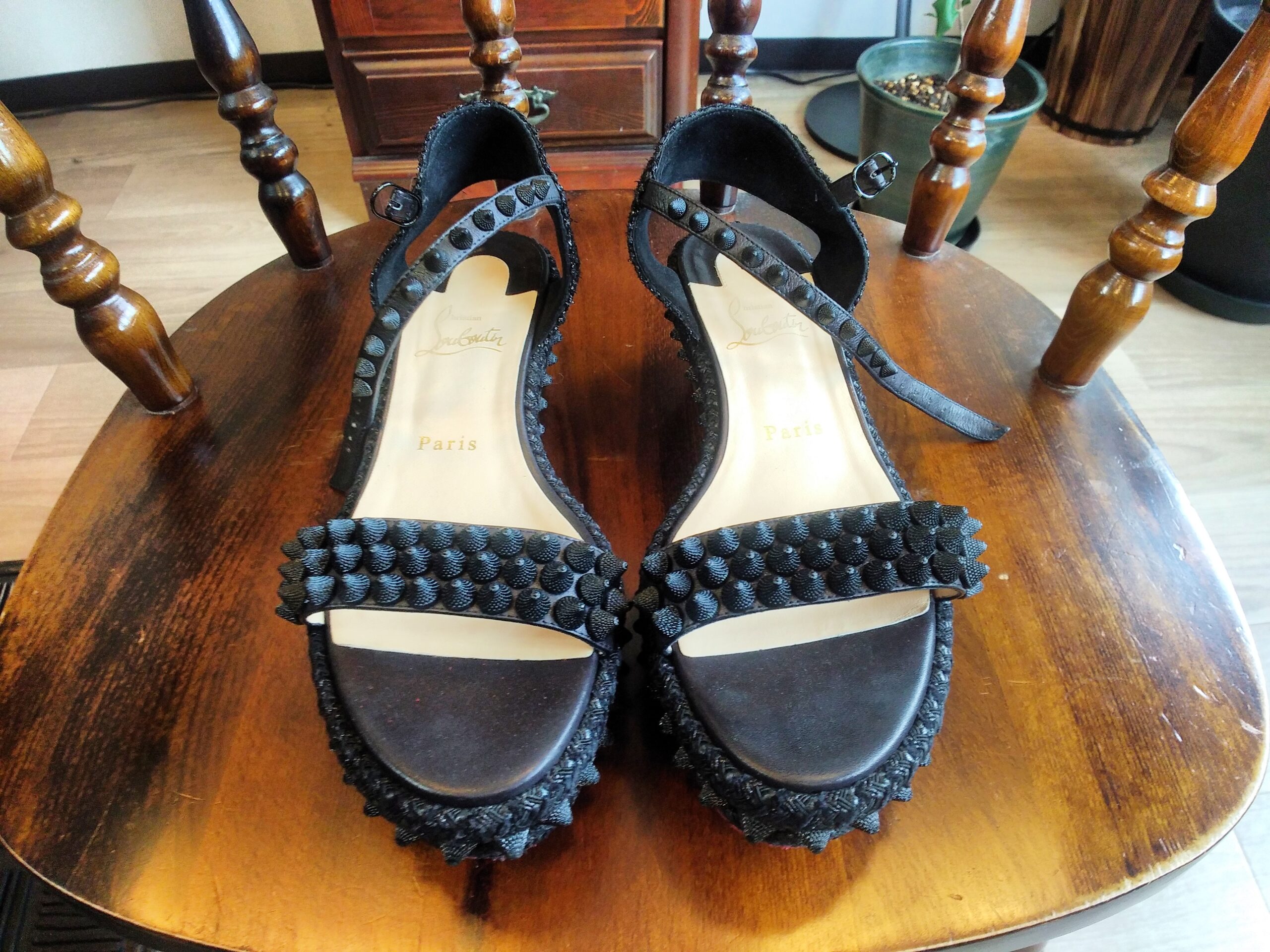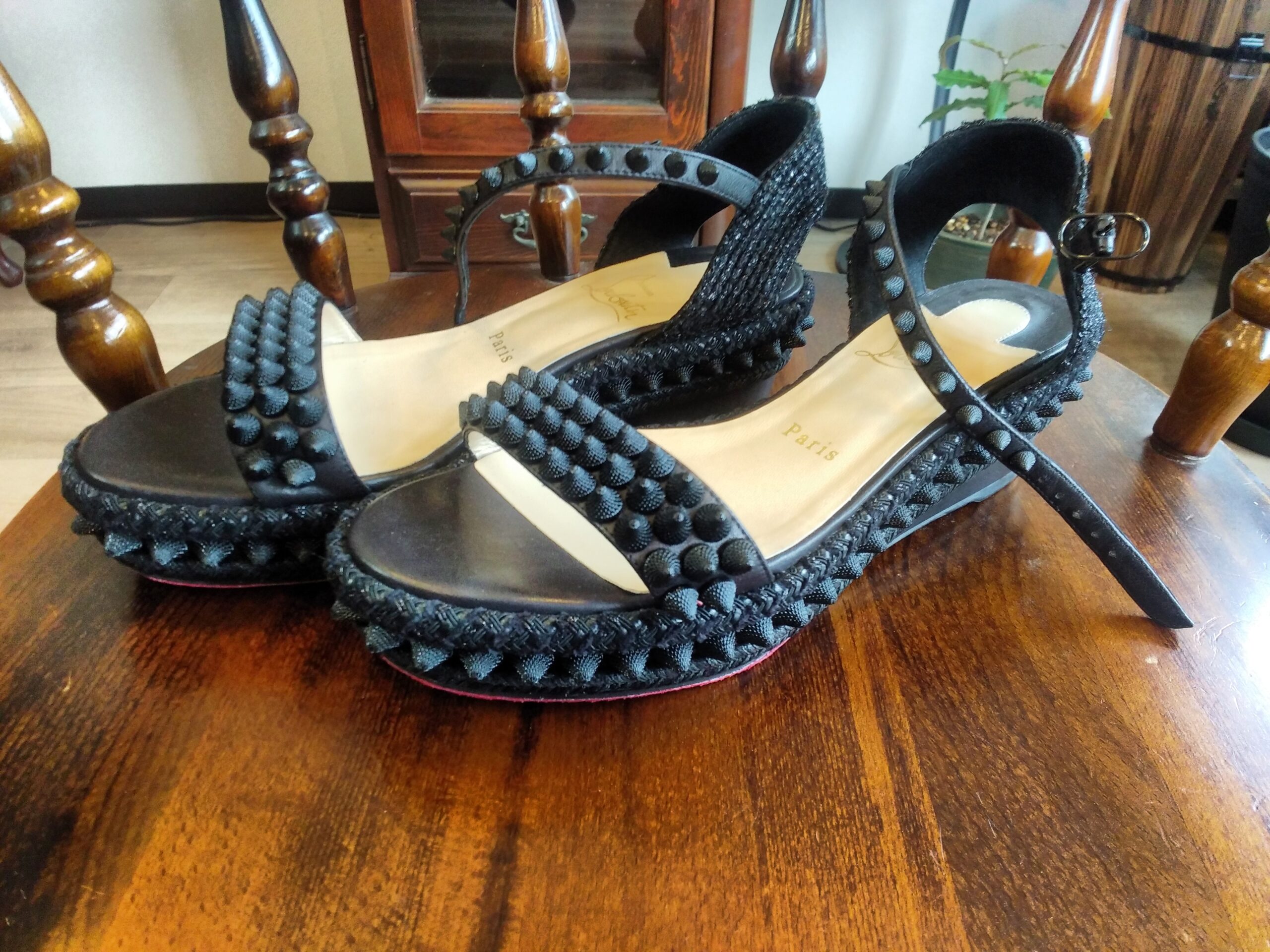 お持ち込みは、甲羅のような特徴的なスパイク(スタッズ)がびっしりと敷き詰められたデザインのルブタン。